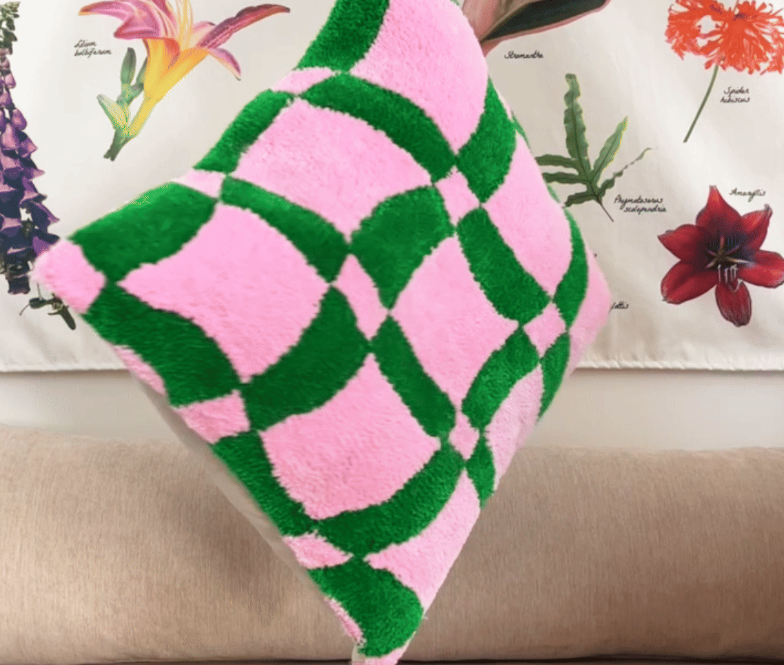 Almohadón Damero Verde y Rosa